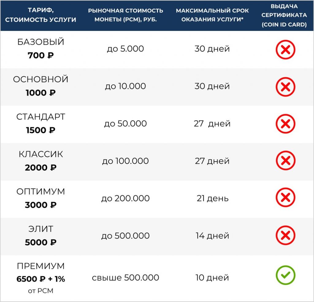 *4. В случае если после изучения монеты необходимо будет провести дополнительные исследования или привлечь профильных экспертов, срок оказания услуги может быть увеличен. Также срок оказания услуг может быть увеличен при сертификации монет Допетровского периода, античных, восточных и иностранных средневековых монет.